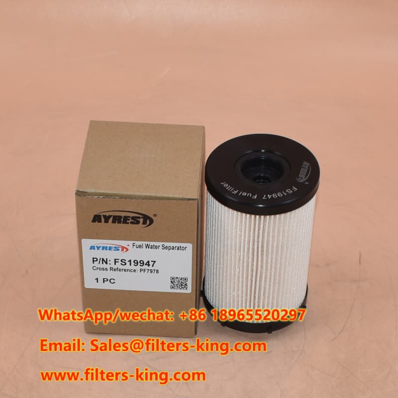 CHINA EVERLASTING PARTS CO., LIMITED is een professionele fabrikant van hoogwaardige filters. Wij zijn gespecialiseerd in luchtfilters, brandstoffilters, hydraulische filters, brandstofwaterafscheiders en complete filterassemblages. Brandstofwaterafscheider FS19947 is ontworpen voor superieure afscheiding van dieselwater, wat optimale motorprestaties en een lange levensduur garandeert voor uw International Durastar-, Terrastar- en Workstar7500-vrachtwagens.